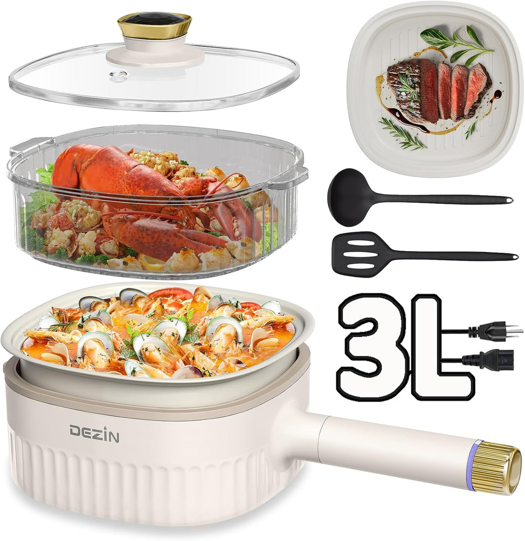 • Hot Pot/Grill Pan/Steamer All-in-One Cooker - Dezin electric pot comes with a grill pan/stock pot/steamer to take your cooking to the next level. This pot can replace most of the cookware. This electric cooking pot is expertly crafted for multifunctional cooking, enabling it to steam above and cook below. Whether you prefer cooking vegetables and meat together or separately, it comes with the removable grill pan/stock pot/steamer offers limitless possibilities.
